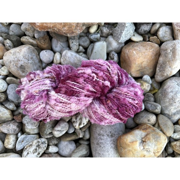 Nadýchané, jemné merino buklé s drobnými plastickými nopky. Přízi můžete kombinovat na různé úplety nebo použít jako solitér na hřejivé šátky, šály, nákrčníky,ale i vesty nebo kabátky.