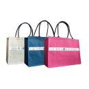 Shopper Lana Grossa je vyrobený z juty, doplněný černým uchem a logem Lana Grossa. Vnitřní část je zpevněná vrstvou polyamidu, je tudíž nepropustný a dá se využít jako běžná taška.