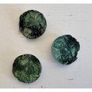 Designový, kulatý knoflík se spodní kovovou částí a motivem květu, vyrobeným z pryskyřice.