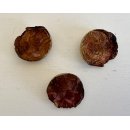 Designový, kulatý knoflík se spodní kovovou částí a motivem květu, vyrobeným z pryskyřice.