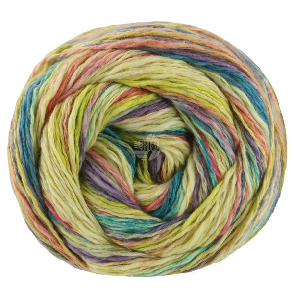 Letní směsová příze s bavlnou,konopím a lnem z řady Gomitolo. Tato řada přízí značky Lana Grossa je velmi oblíbená, díky zajímavé barevnosti a vzorování.