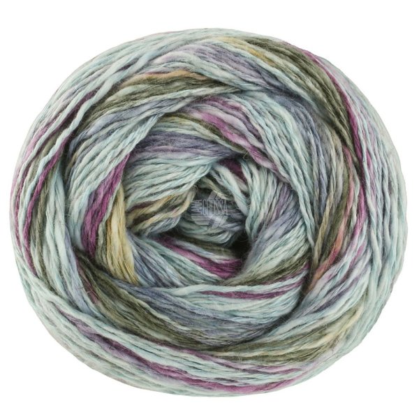 Letní směsová příze s bavlnou,konopím a lnem z řady Gomitolo. Tato řada přízí značky Lana Grossa je velmi oblíbená, díky zajímavé barevnosti a vzorování.