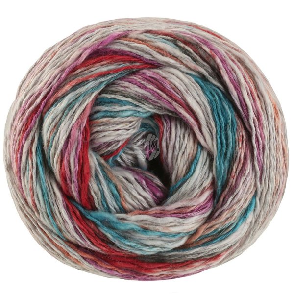 Letní směsová příze s bavlnou,konopím a lnem z řady Gomitolo. Tato řada přízí značky Lana Grossa je velmi oblíbená, díky zajímavé barevnosti a vzorování.