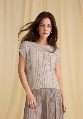 Velmi příjemná směs bavlny a hedvábí, vhodná jak na letní , tak i na modely pro přechodné období. Vlákno má podobu řetízku, úplet je tak velmi rovnoměrný.