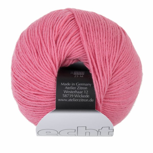 Špičková bavlna z kontrolovaného organického pěstování, bez genetické modifikace. Materiál pro výrobu pochází z Jižní Karolíny. Celý proces, od spřádání a kroucení až po barvení a konečnou úpravu, je realizován v Německu. Tento materiál je certifikován dle normy Oeko-Tex Standard 100, třída produktu 1.