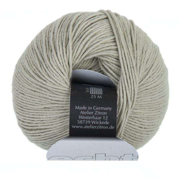 Špičková bavlna z kontrolovaného organického pěstování, bez genetické modifikace. Materiál pro výrobu pochází z Jižní Karolíny. Celý proces, od spřádání a kroucení až po barvení a konečnou úpravu, je realizován v Německu. Tento materiál je certifikován dle normy Oeko-Tex Standard 100, třída produktu 1.