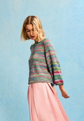Příze má velmi atraktivní vzorování a lze ji tam použít i na hladkých pleteninách, kde vynikne její barevnost. Je vhodná i na háčkované modely.
