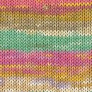 Příze má velmi atraktivní vzorování a lze ji tam použít i na hladkých pleteninách, kde vynikne její barevnost. Je vhodná i na háčkované modely.